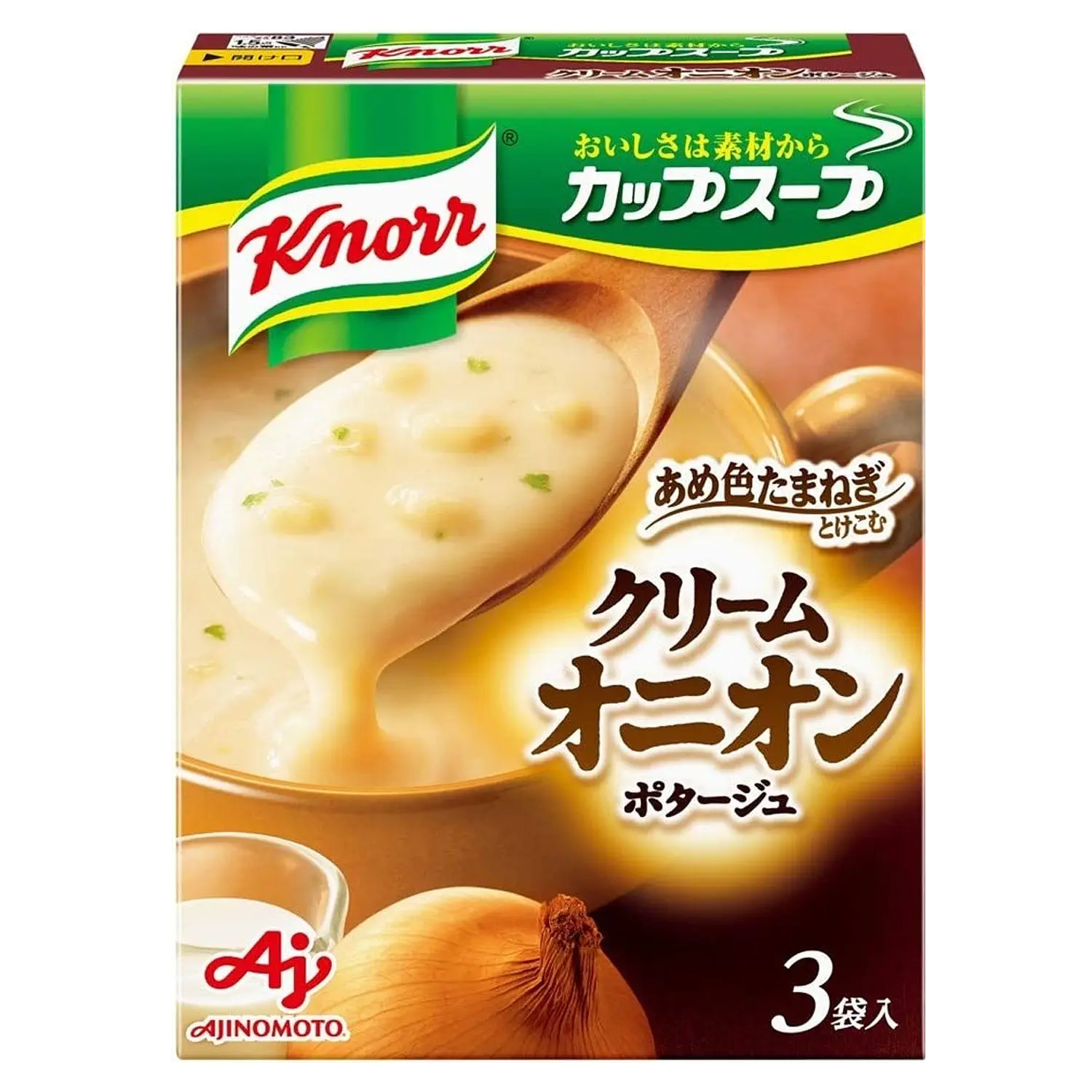 クリーミングパウダー(タイ製造、国内製造、インドネシア製造)、でん粉、食用加工油脂、ローストオニオンパウダー、砂糖、じゃがいも、食塩、デキストリン、チーズ、オニオンエキス、全粉乳、オニオン、バターソテーオニオンパウダー、香辛料、酵母エキス発酵調味料、うきみ(たまねぎ調味品、パセリ)/調味料(アミノ酸等)、糊料(グァーガム)、酸化防止剤(ビタミンE)、(一部に小麦・乳成分・大豆を含む)
