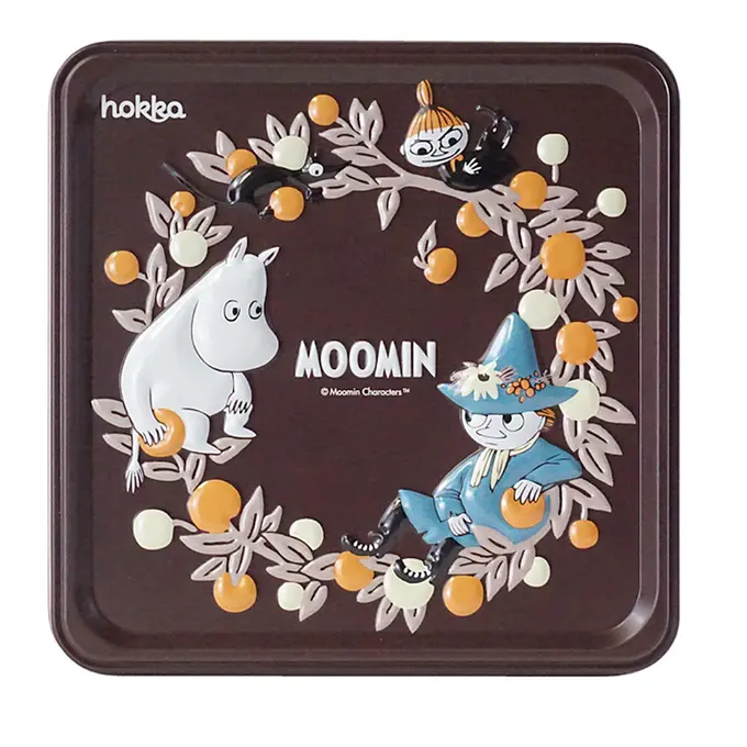 ●缶にはムーミンコミックスに登場するムーミン、ちびのミイ、スナフキン、ソフスが描かれています。蓋のイラストはプックラ浮き出たエンボス仕様になっています。