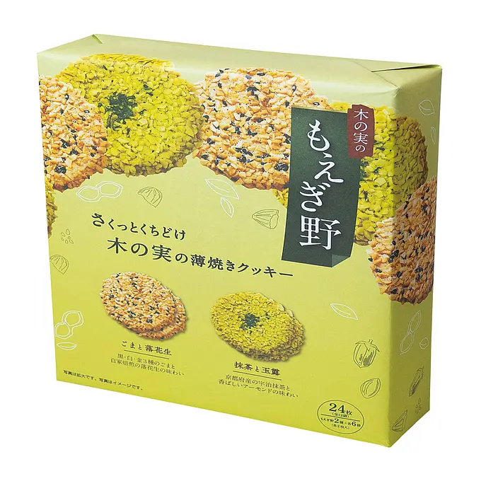 A light and crispy cookie with a delicate melt-in-your-mouth texture, perfect for everyone from children to the elderly. Made with Japanese rice flour, the dough is crisp and airy, topped with nuts, a gift from the earth, creating a fragrant and delicious thin cookie.